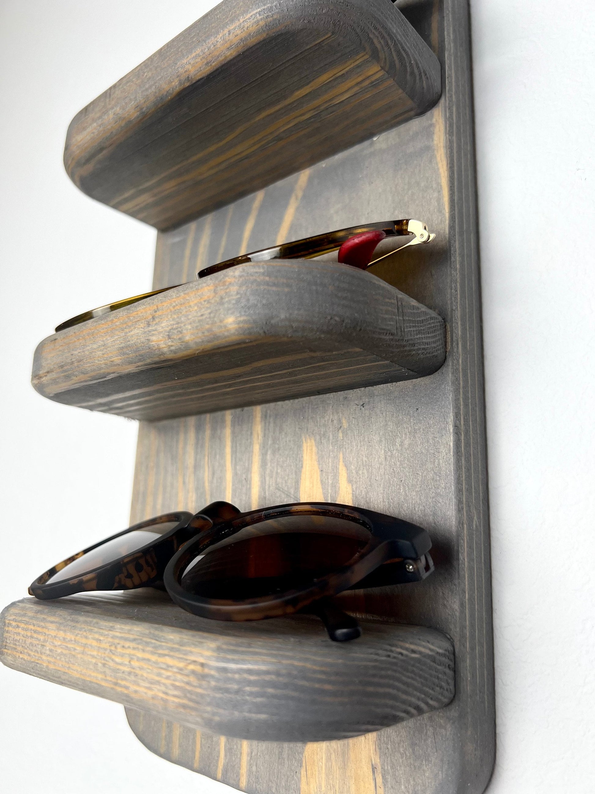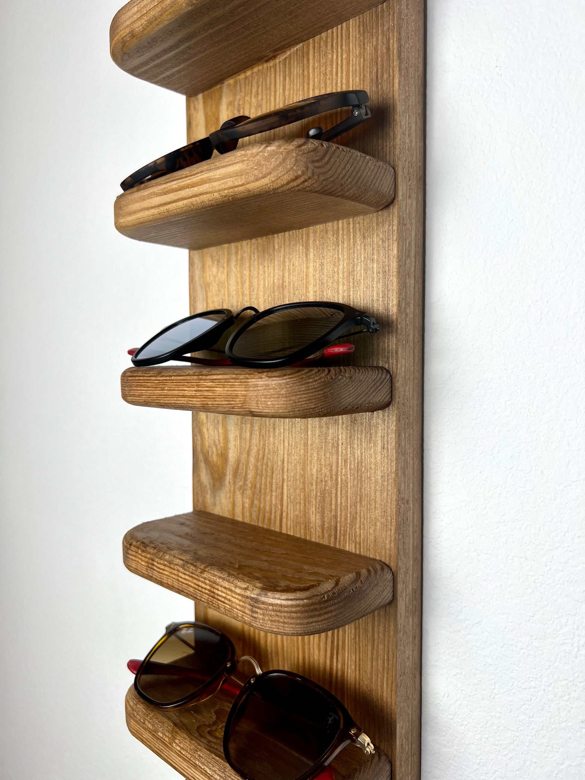 Each Rounded Sunglasses Shelf with Key Hooks is handcrafted from locally cut and milled High Quality Pine from our home in the Ozarks. We offer several other variations and sizes, so make sure to check out the links below!
