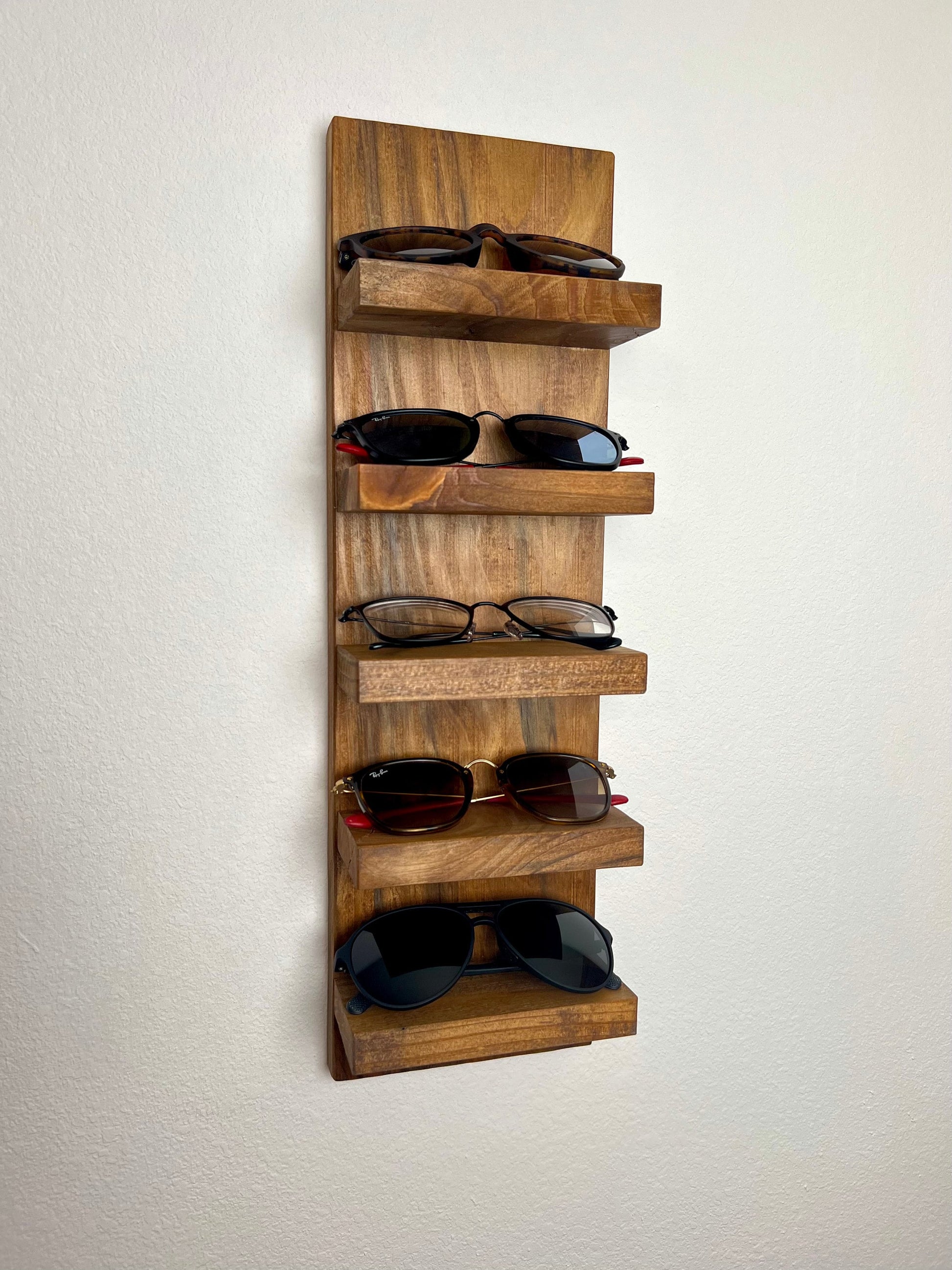Each Sunglasses Shelf is handcrafted from locally cut and milled High Quality Pine from our home in the Ozarks. Our customers have used this Wall Mounted Glasses Organizer in their Homes, Apartments, RVs, Camper Vans, and Dorms. We offer several other variations and sizes, so make sure to check out the links below!